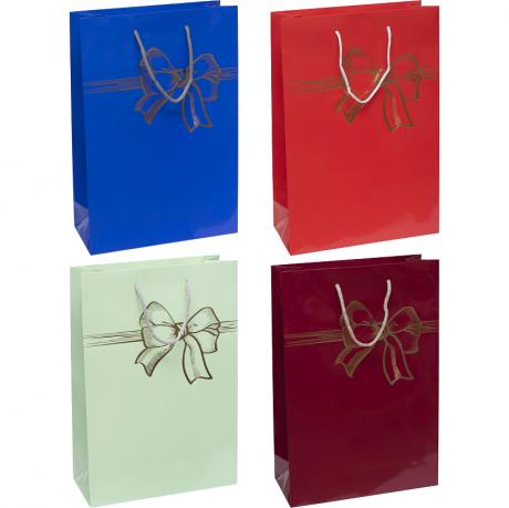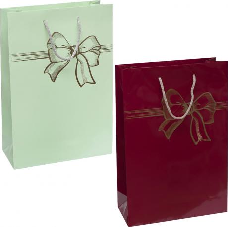Пакет "Бант" вертикальний розміром 25×39×8 см має глянцеве покриття та тиснення у вигляді банта. Використовується для пакування подарунків на свята та особливі події. Щільний матеріал зберігає форму, а ручки-шнурки забезпечують зручність перенесення. Розмір пакета: 25×39×8 см.
