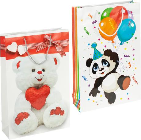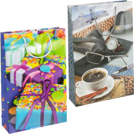Пакет подарунковий з глянцевою поверхнею. Розміри 39х25х8 см. Має ручки-шнурки. У наборі 12 штук. Кольори в асортименті.