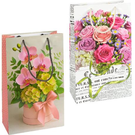 Пакет подарунковий "Квіти". Глянцевий. Ручки шнурок. Розмір 27х16х5 см. Мікс 12 шт. Кольори в асортименті.