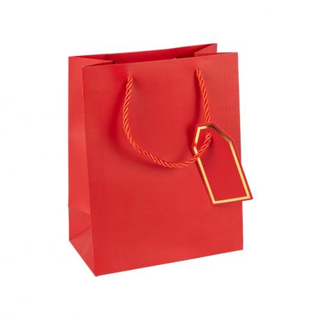 Подарунковий пакет вертикального формату виготовлений із картону та оздоблений рельєфним тисненням з імітацією тканинної текстури. Стриманий дизайн надає виробу охайного та універсального вигляду. Пакет укомплектований карткою для підпису, зручною для персоналізації подарунка. Оснащений мотузковою ручкою.