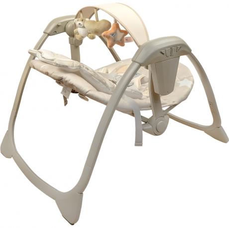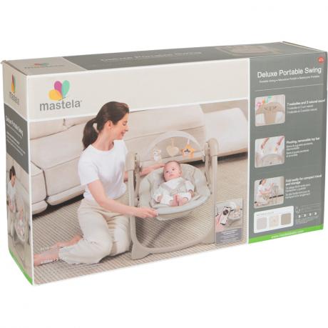 Дитячий заколисуючий центр Mastela 6512 призначений для дітей вагою 3–11 кг та використовується для комфортного відпочинку і м’якого заколисування малюка вдома. Розмір гойдалки — 74×56×56 см, розмір гамака — 73×49 см, що забезпечує зручне розміщення дитини. Модель оснащена 5 швидкостями гойдання, 3 режимами таймера та 7 мелодіями, двопозиційним нахилом гамака і ременями безпеки з плечовим фіксатором. У комплект входять знімна дуга з трьома іграшками та знімний підголівник. Центр легко складається для зберігання та транспортування. Працює від 4 батарейок типу C/LR14 (не входять до комплекту) або від USB-кабелю (в комплекті), додається інструкція англійською мовою. Розмір коробки — 61×37×18 см. Товар вигідний для оптових магазинів і підходить для роздрібного продажу.