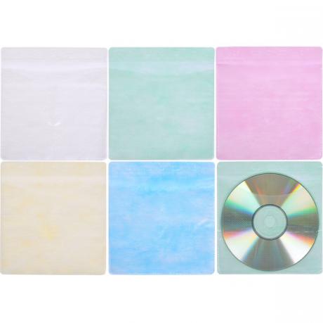 Файл для зберігання двох дисків, кількість у наборі - 100 штук. Виготовлений з ПВХ та нетканого матеріалу. Підходить для підшивання в теку CD-бокс або сегрегатор, має стандартні отвори для цього. Кольори представлені в асортименті. Розмір одного файлу - 13,5*12,8 см.