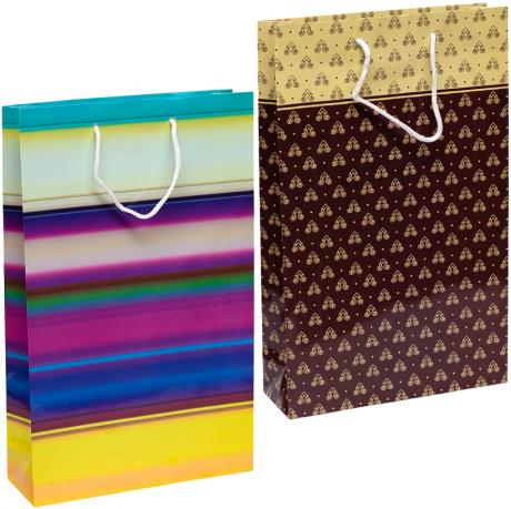 Пакет подарунковий з глянцевою поверхнею. Розмір 39х25х8 см. Має ручки-шнурки. У наборі 12 штук. Кольори в асортименті.