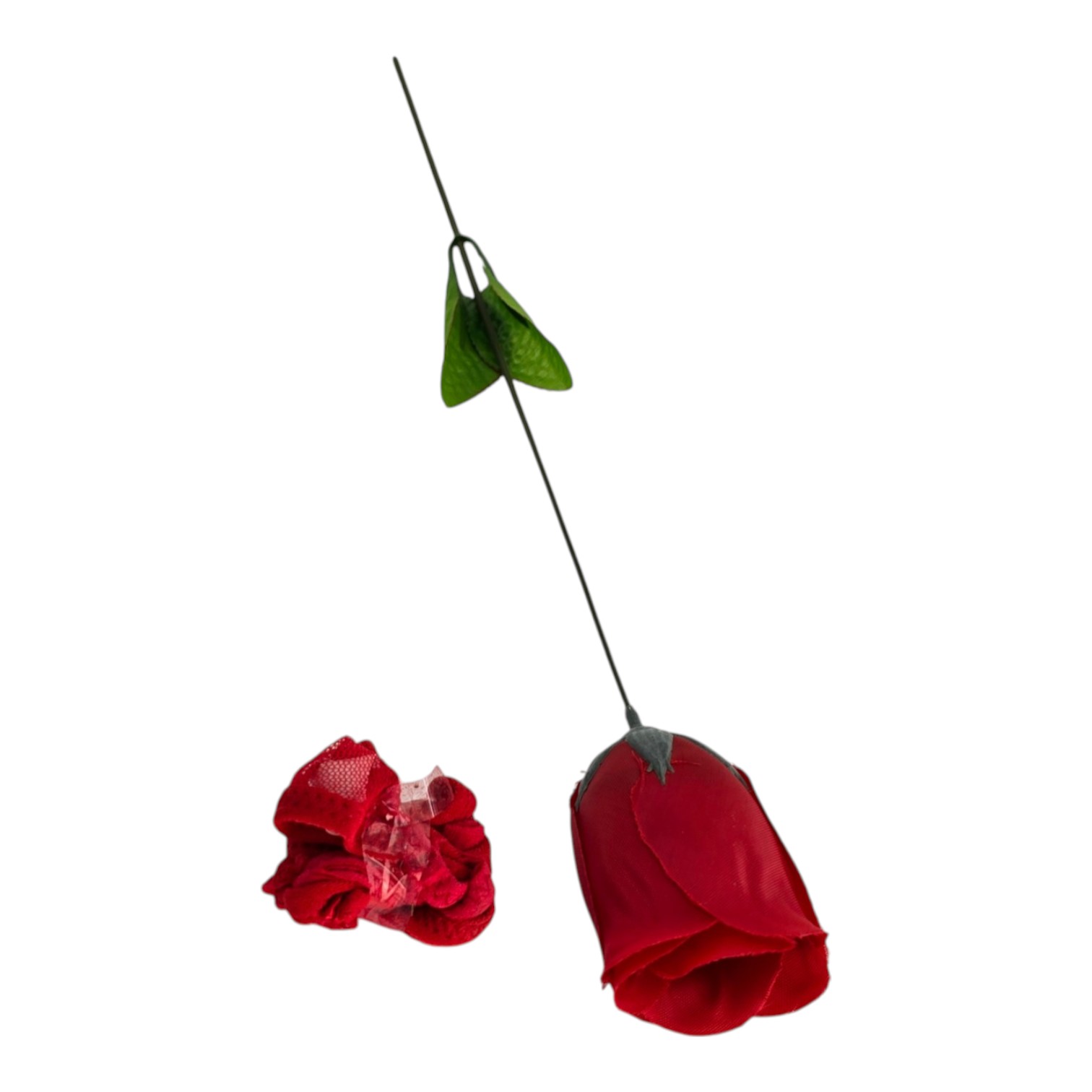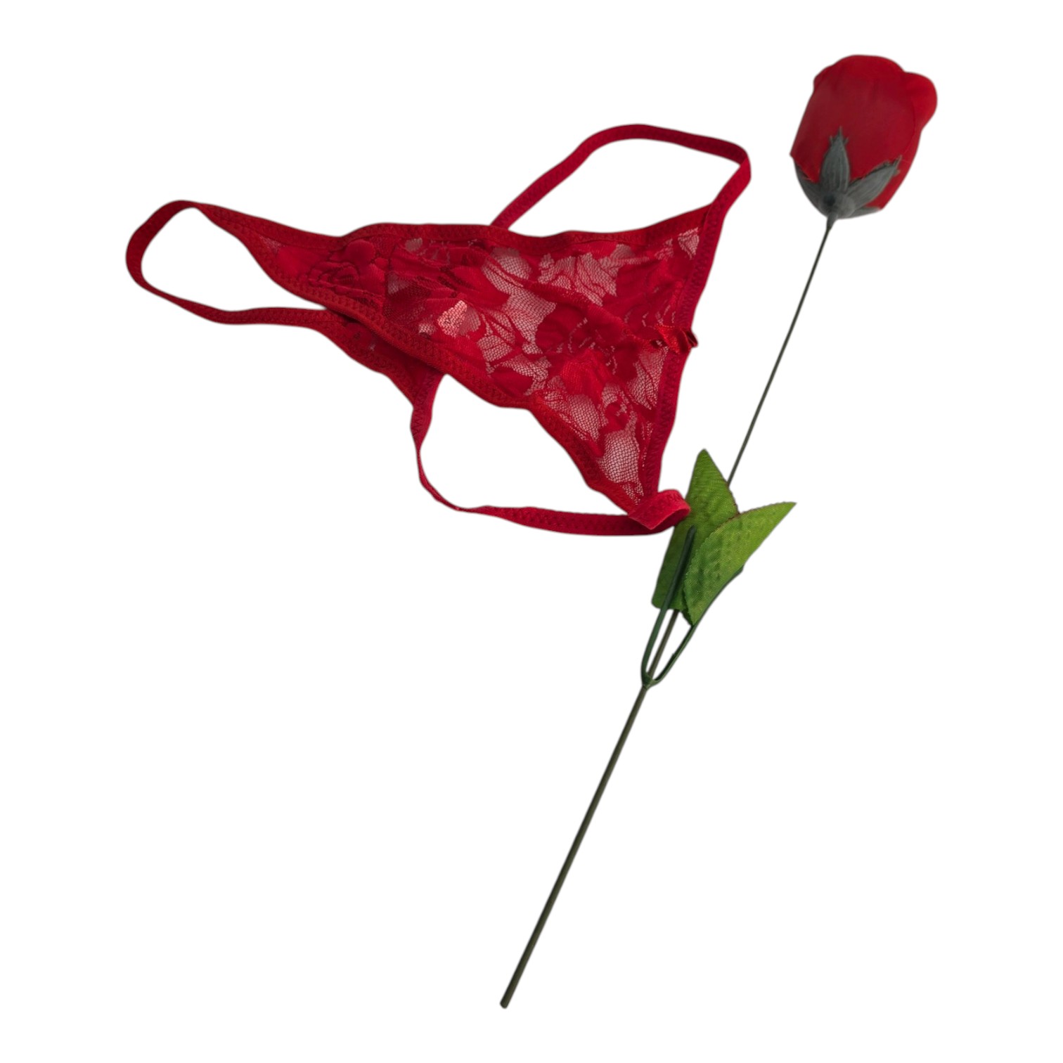 Красная роза 39 см. Бутон полностью раскрывается — внутри спрятаны женские трусики-стринги из кружева.