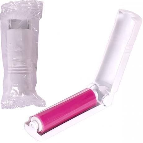 Кишенькова щітка для одягу з силіконовим роликом. Корпус виготовлений з пластику. Розмір в складеному вигляді становить 10 см.