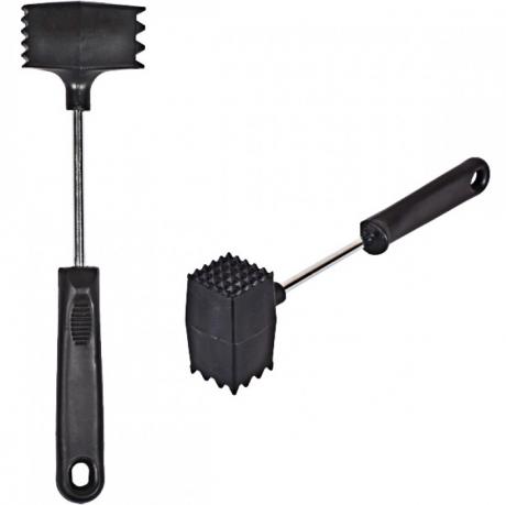Цей молоток для м'яса використовується при приготуванні м'ясних страв. Частину виготовлено з металу, а голівку та руків'я - з чорного пластика. Загальна довжина молотка становить 25 см, а розміри ударної частини - 6*3 см.