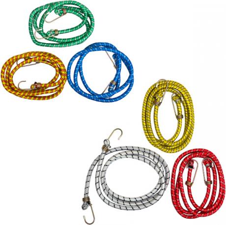 Ця багажна гумка має довжину 1,5 метра і діаметр 10 мм. Вона обмотана нейлоном і оснащена металевими гачками для надійного кріплення.