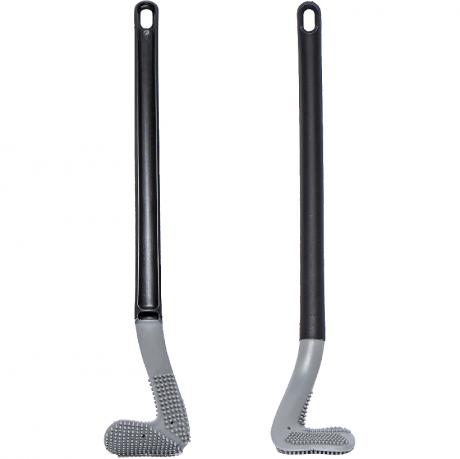 Щітка силіконова призначена для чищення унітазу та догляду за сантехнікою у ванній кімнаті. Довжина щітки — 39 см, ширина ручки — 2 см, розмір силіконової робочої частини — 11×7 см. Робоча частина виготовлена з гнучкого силікону з рельєфною поверхнею, що ефективно видаляє забруднення та наліт, не пошкоджуючи поверхню сантехніки. Вигнута форма допомагає очищати важкодоступні місця під обідком унітаза. Довга пластикова ручка зручно лежить у руці, у верхній частині передбачений отвір для підвішування та зберігання. Ціна вказана за 1 одиницю товару. Товар вигідний для оптових магазинів і підходить для роздрібного продажу.