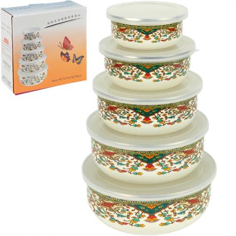 Практичний набір судочків для зберігання та подачі їжі. Кожен судочок виготовлен з емальованого металу та оснащен пластиковою кришкою для зручності зберігання. Підійде для використання вдома, на дачі чи в дорозі.
