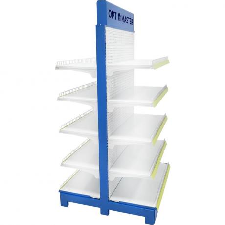 Стелаж торговий двосторонній призначений для розміщення та викладки товарів у магазинах і торгових залах. Розміри — 90×100×180 см, кількість полиць — 5. Конструкція двостороння, що дозволяє ефективно використовувати простір і розміщувати продукцію з двох сторін. Збільшена кількість полиць забезпечує більш містке розміщення товарів і зручну організацію асортименту. Стелаж підходить для різних категорій продукції та використовується в супермаркетах, магазинах і складських приміщеннях. Міцна конструкція розрахована на щоденне використання. Ціна вказана за 1 одиницю товару. Товар вигідний для оптових магазинів і підходить для роздрібного продажу.