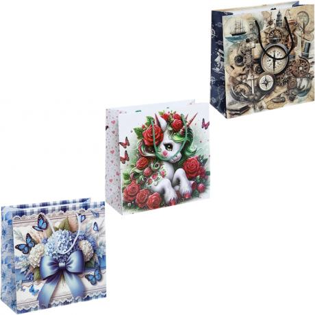 Пакет подарунковий кольоровий квадрат "Мікс" з ручками-шнурками. Розмір пакета 24x24x10 см.