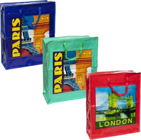 Господарська сумка обладнана двома міцними ручками. Вона прошита по краях нитками, що забезпечує її міцність. Сумка має металеву змійку і бігунок. Розмір сумки становить 65х55х25 см. Доступна в різних кольорах.