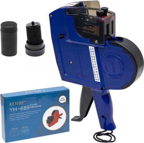 Цей етикет-пістолет виготовлений з пластику і має два рядки для 10-розрядної цифро-буквенної інформації. Він використовується для нанесення артикулу, ціни, номенклатурного номера, дати, номера серії або партії на спеціальну стрічку-цінник. Фарбувальний валик можна замінити, що дозволяє продовжити термін служби етикет-пістолета. Розмір етикетки - 23*16мм. Запасний фарбувальний валик входить у комплект.