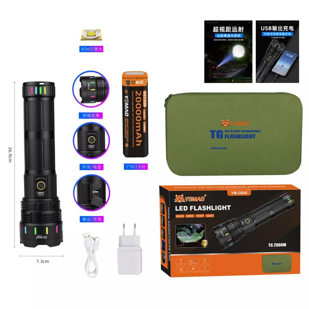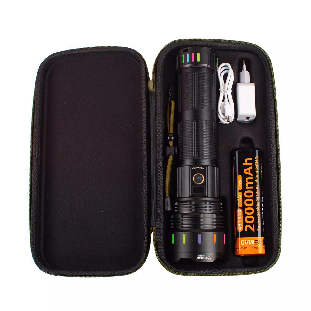 Дальнобойный фонарь YEMAO YM-G646, 4000LM, аккумулятор 451350 (20000 mAh), чехол, блок питания