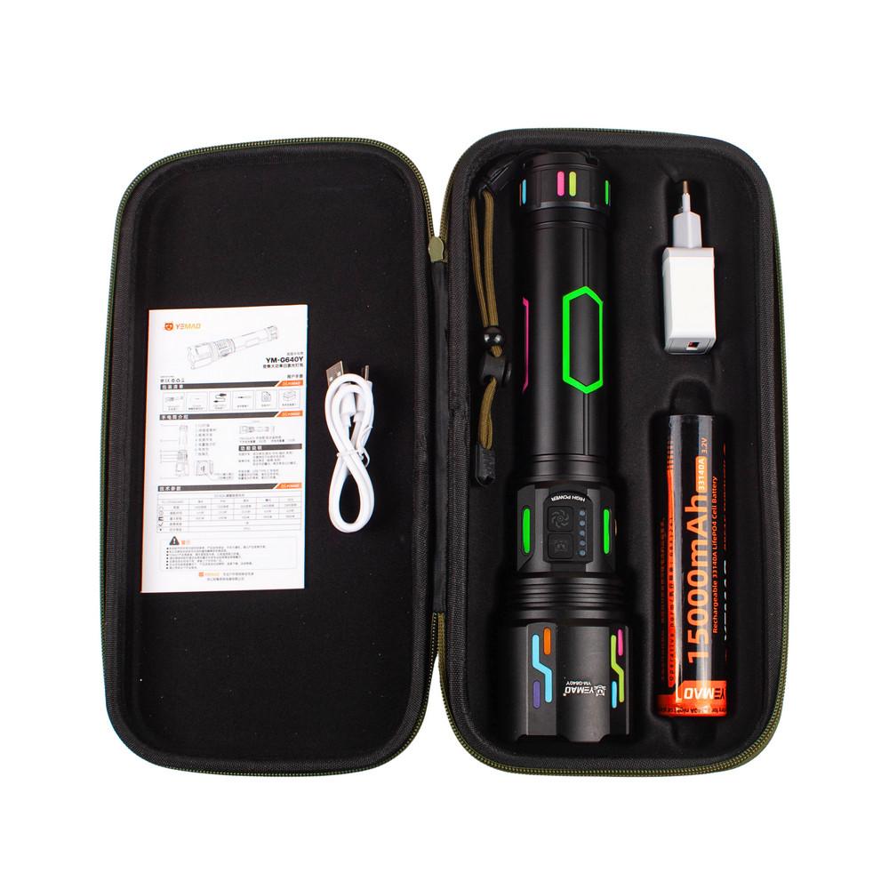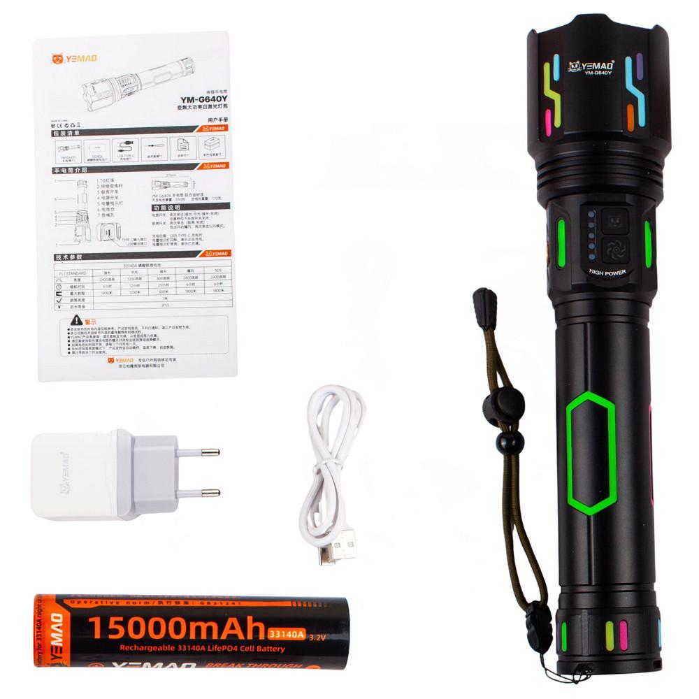 Дальнобойный фонарь YEMAO YM-G640Y, 4000LM, аккумулятор 33140 (15000 mAh), чехол, блок питания