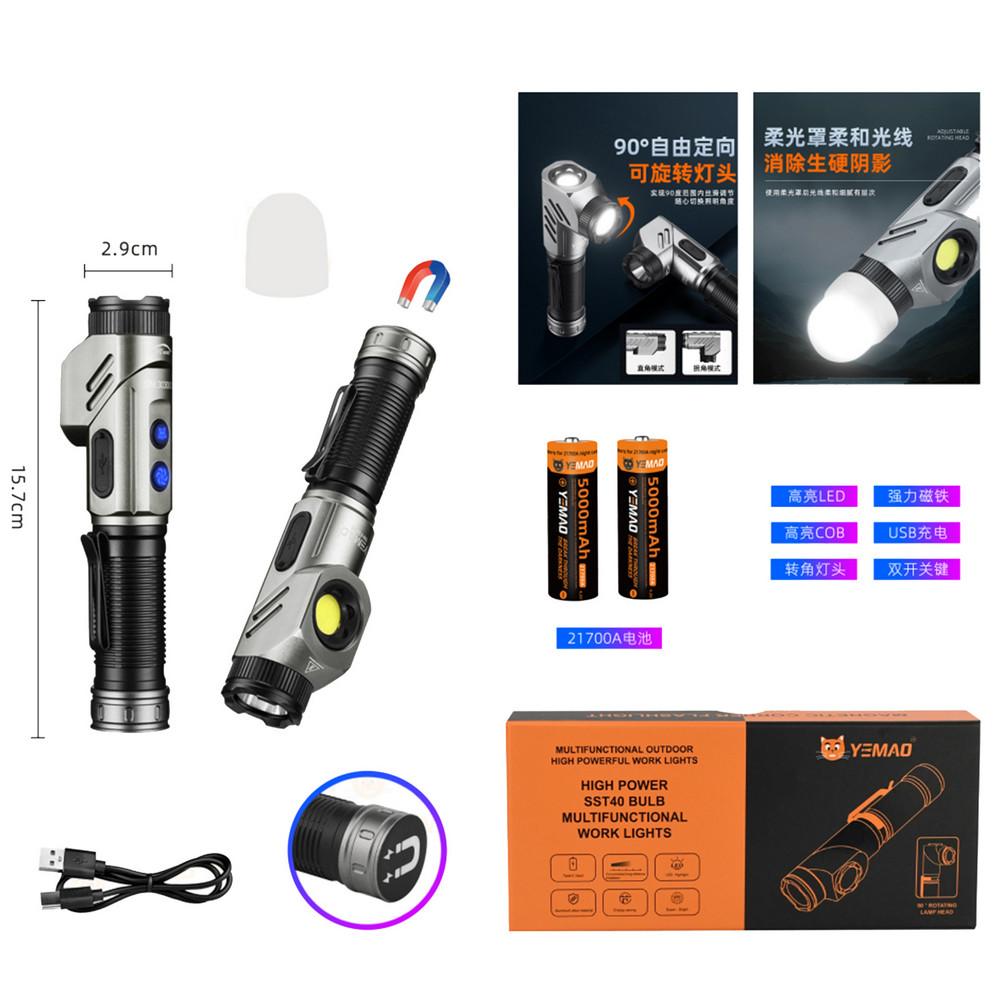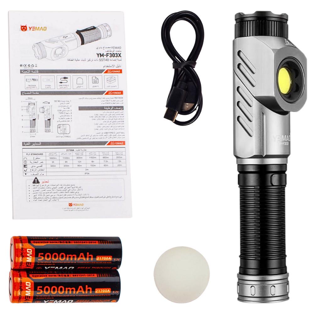 Тактический фонарь YEMAO YM-F303X, 1600LM, аккумуляторы 2x21700 (2x5000 mAh), поворотная голова