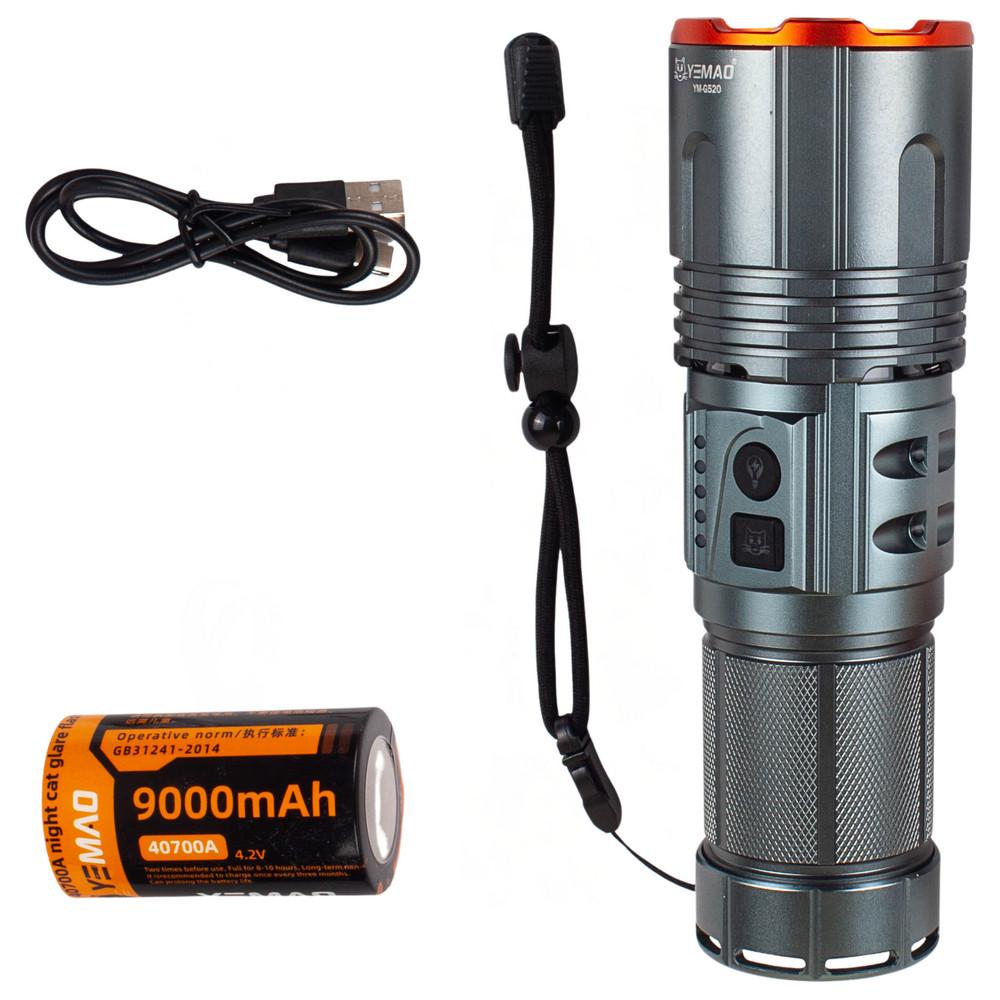 Тактический фонарь YEMAO YM-G520, 2500LM, аккумулятор 40700 (9000 mAh), функция лампы