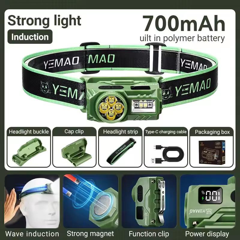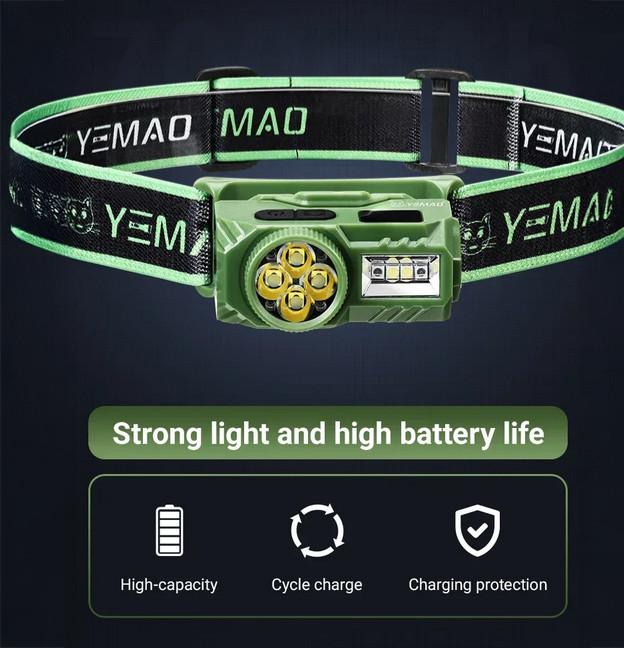 Налобный фонарь YEMAO YM-T614, 380LM, аккумулятор 700 mAh, с красным светом