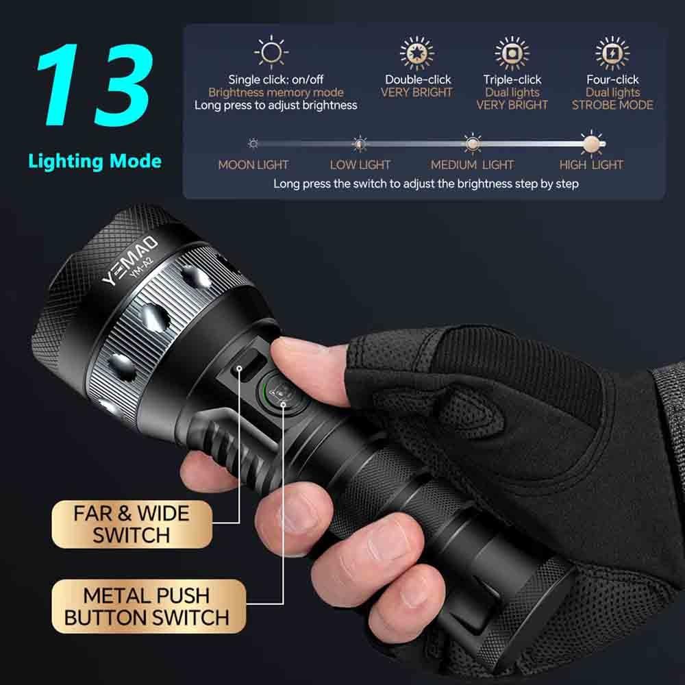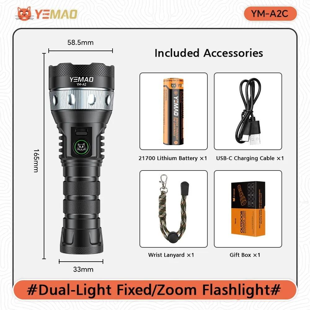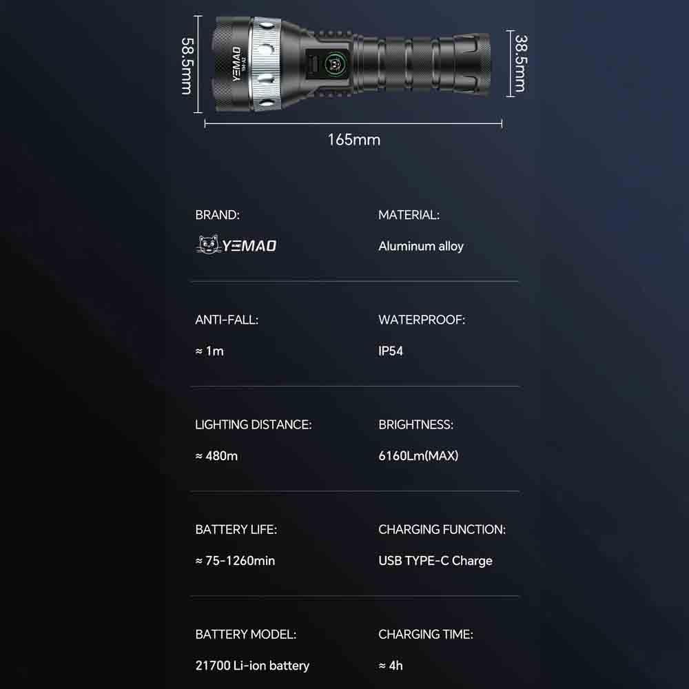 Комплектация: фонарь, 1x21700 аккумулятор, USB кабель для зарядки