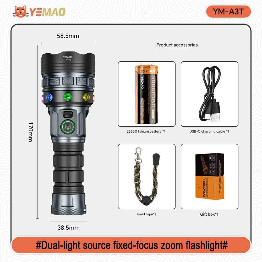 Комплектация: фонарь, 1x26650 аккумулятор, USB кабель для зарядки