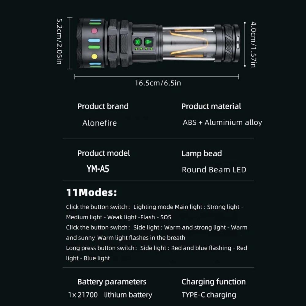 Фонарь YEMAO YM-A5 TG 30W, 1x21700, Power Bank, ЗУ Type-C, zoom, функция лампы