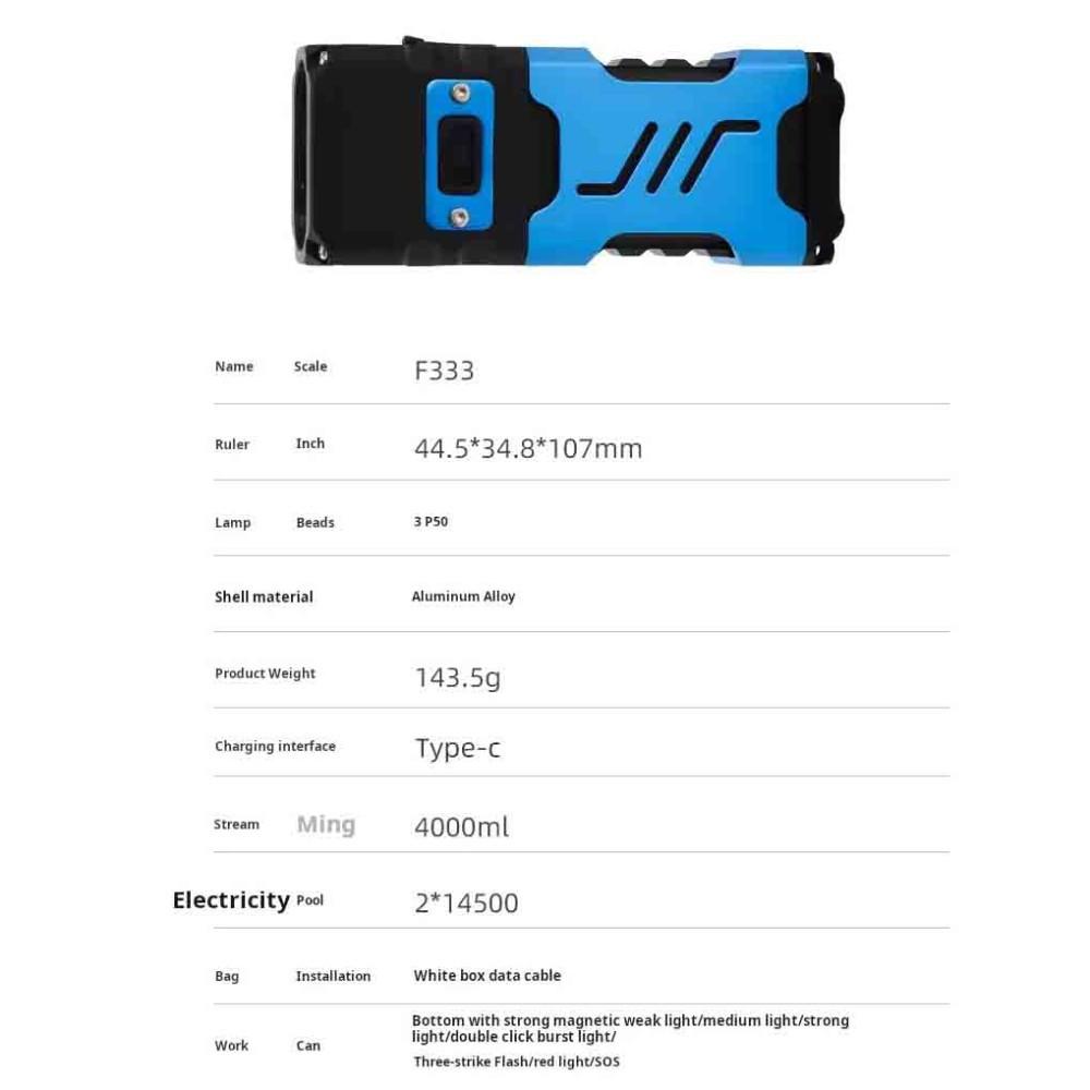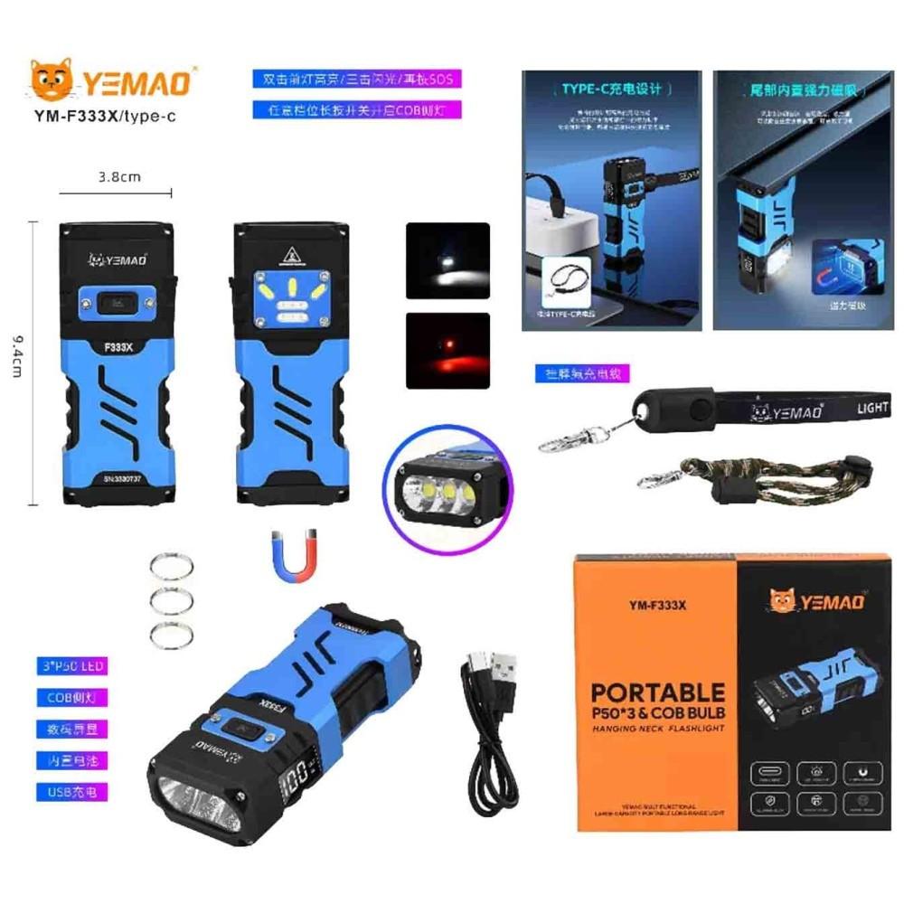Фонарь YEMAO YM-F333X 3P50+COB(White+Red), Li-Ion аккумулятор, ЗУ Type-C, магнит