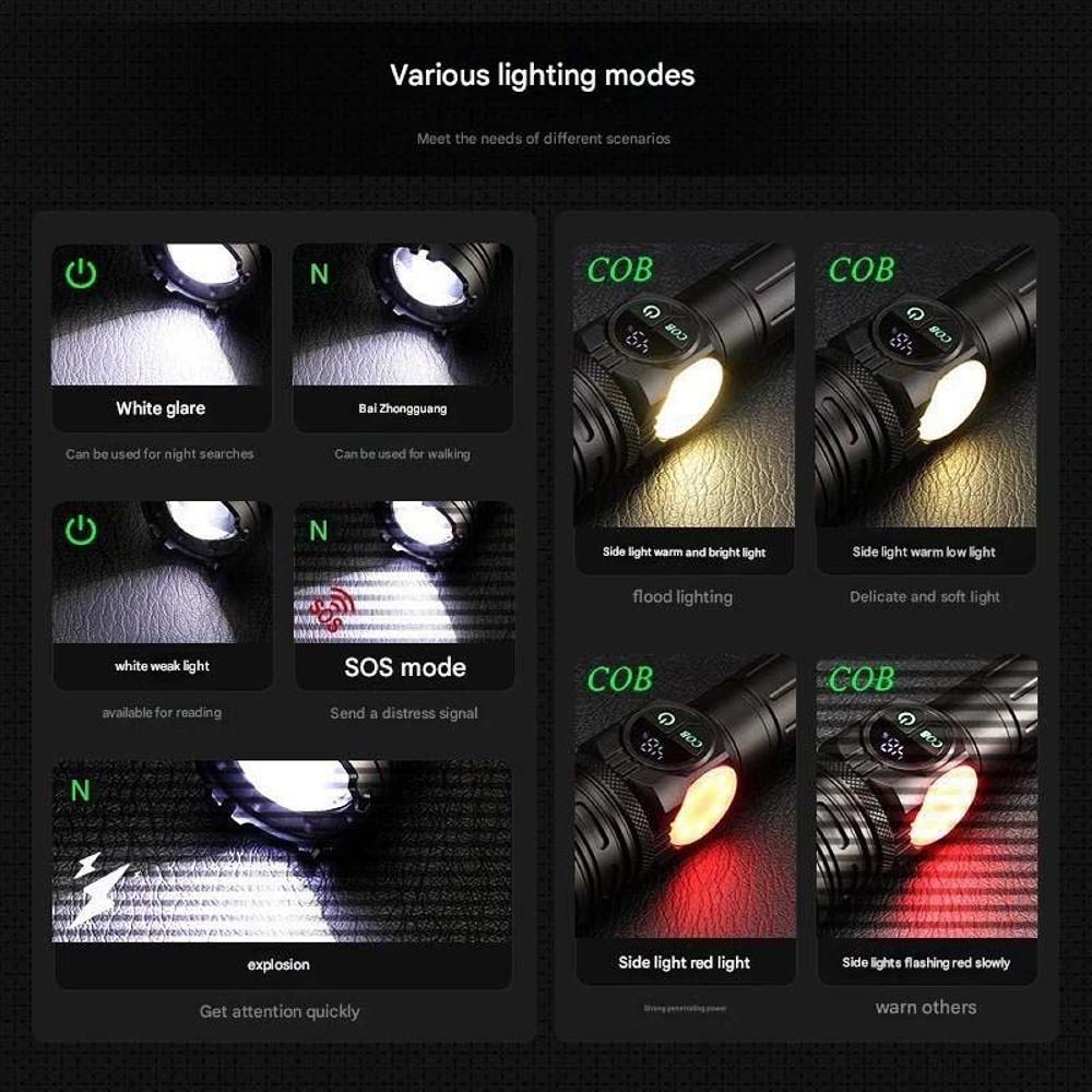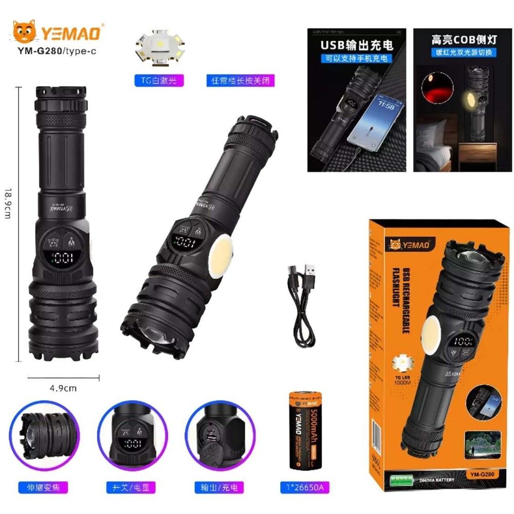 Фонарь YEMAO YM-G280 TG+COB(Yellow+Red), 1x26650, Power Bank, ЗУ Type-C, zoom