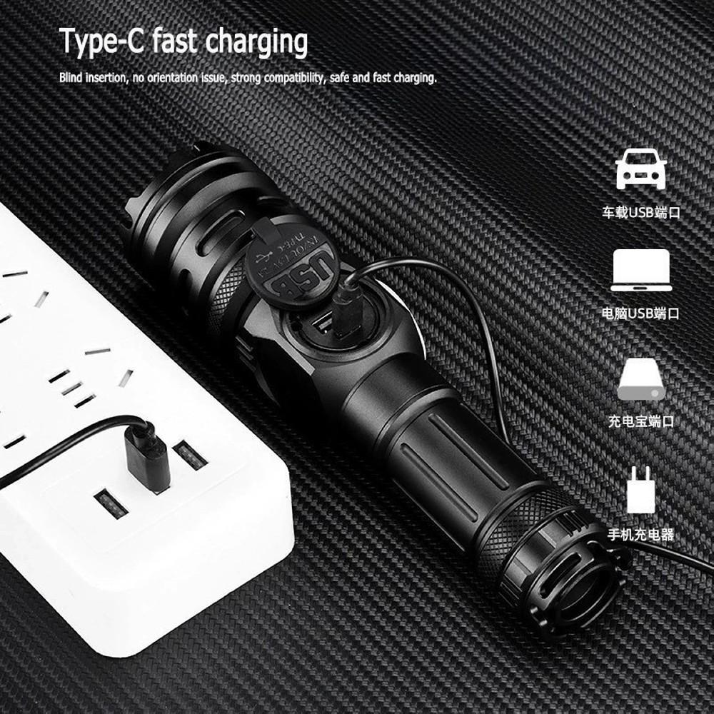 Комплектация: фонарь, 1x26650 аккумулятор, USB кабель для зарядки