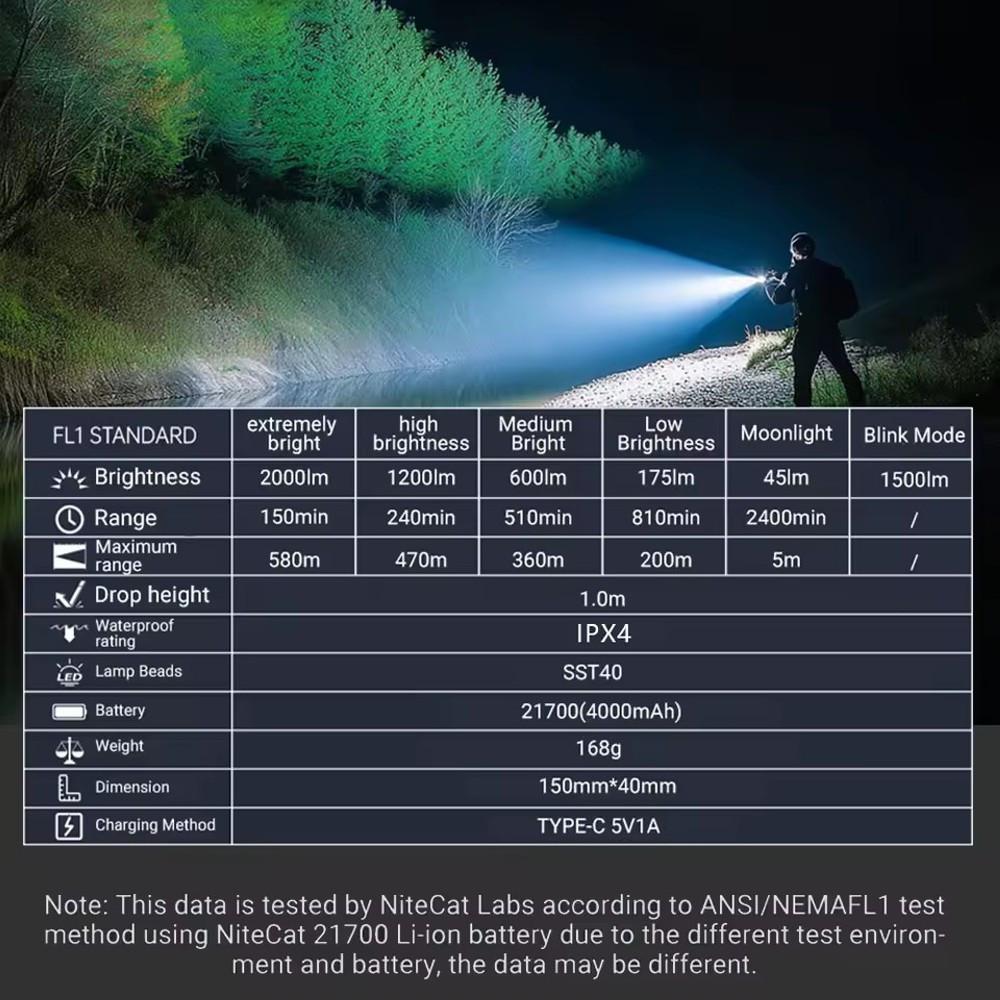 Комплектация: фонарь, 1x21700 аккумулятор, USB кабель для зарядки