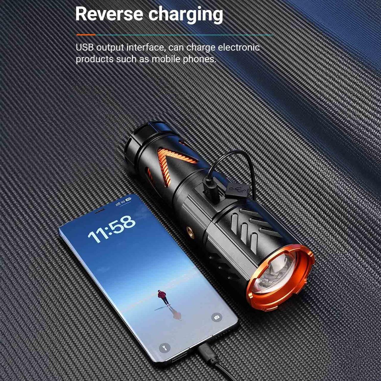 Комплектация: фонарь, 1x40700 аккумулятор, USB кабель для зарядки