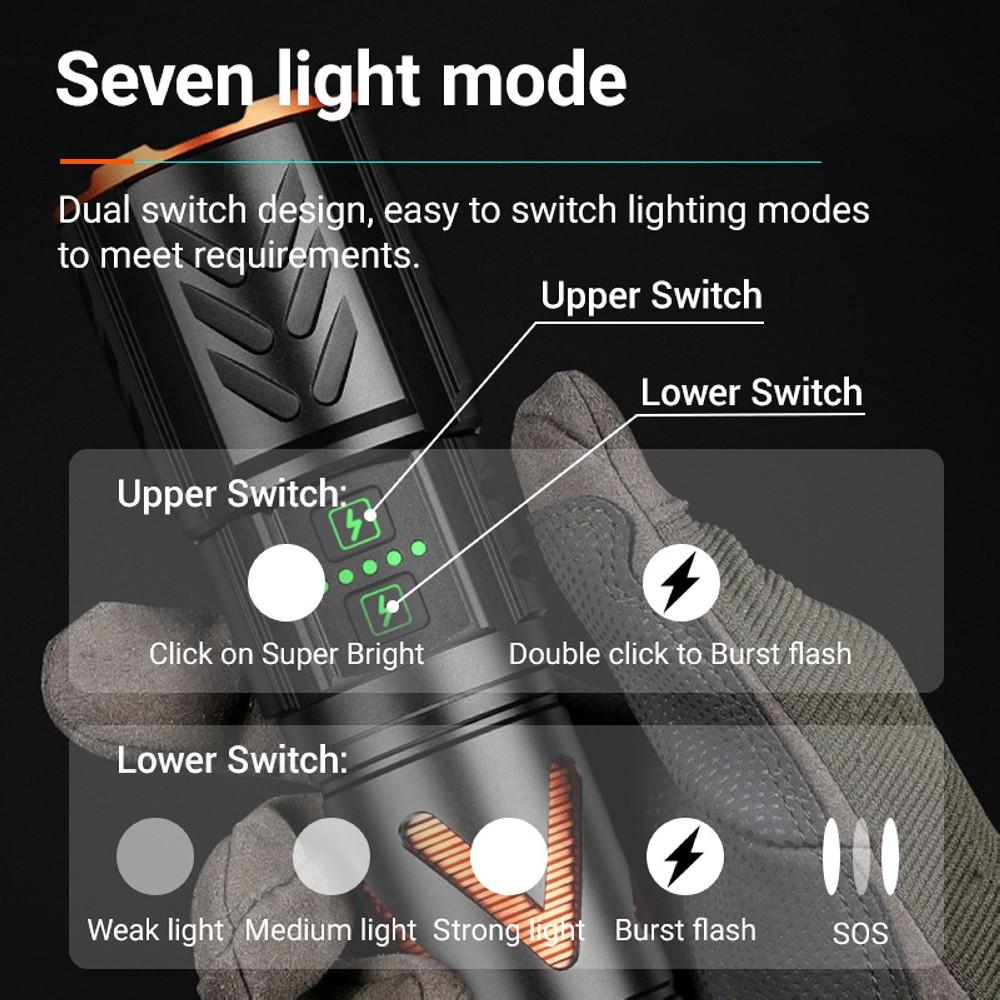 Количество режимов работы: 5 (100%, 50%, 25%, стробоскоп, SOS)