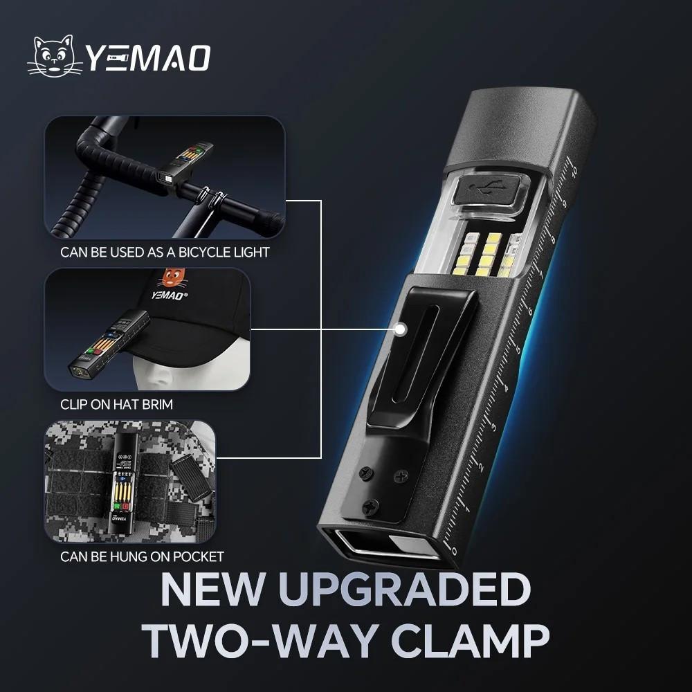 Фонарь YEMAO YM-M31 P50+лазер(RED)+SMD(RGB), Li-Ion аккумулятор, ЗУ Type-C, магнит, зажим