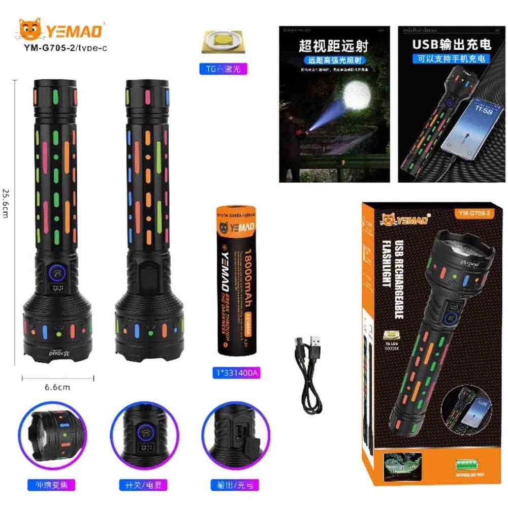 Фонарь YEMAO YM-G705-2 TG, Li-Ion аккумулятор, Power Bank, ЗУ Type-C, zoom