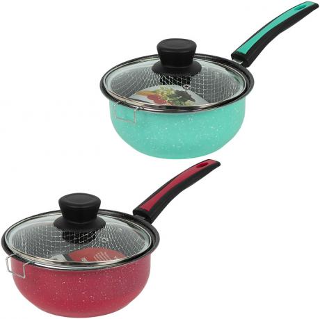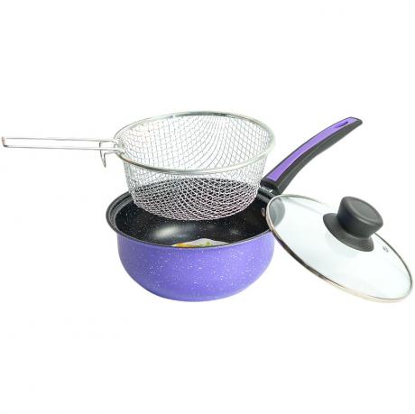 Сотейник з фритюрною корзиною підходить для приготування смажених страв, закусок і гарнірів у домашніх умовах. Діаметр — 24 см, об’єм — 2 л. У комплект входить знімна металева фритюрна корзина діаметром 21 см та скляна кришка з паровідводом. Корпус виготовлений з алюмінію з мармуровим антипригарним покриттям, що зменшує прилипання продуктів і полегшує догляд. Ергономічна ручка виконана з термостійкого пластику, зручна у використанні. Підходить для газових та електричних плит. Можна мити в посудомийній машині. Поставляється в захисній плівці. Ціна вказана за 1 одиницю товару. Товар вигідний для оптових магазинів і підходить для роздрібного продажу.