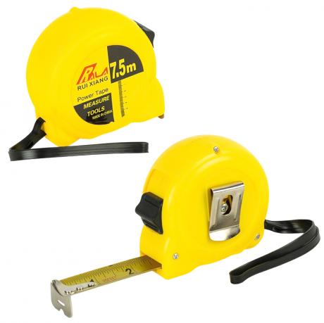 Рулетка вимірювальна 7,5 м призначена для точних вимірювань у побуті, ремонті та будівельних роботах. Довжина стрічки становить 7,5 м, вона виготовлена зі сталі та має ширину 2,5 см, що забезпечує зручність у роботі та хорошу читабельність шкали. Корпус виконаний із міцного пластику, завдяки чому рулетка зручно лежить у руці та зберігає стійкість до навантажень. Кнопка фіксації дозволяє закріпити стрічку на потрібній довжині, а металева кліпса з тильного боку зручна для кріплення на поясі. Підходить для дому та професійного використання. Ціна вказана за 1 одиницю товару. Товар вигідний для оптових магазинів і підходить для роздрібного продажу.