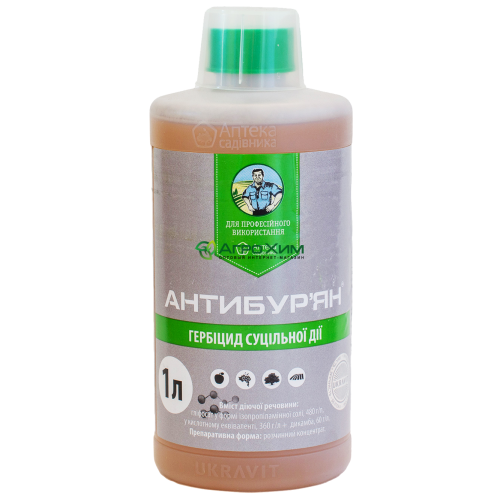Антибурьян - системный гербицид сплошного действия против комплекса сорняков на землях после сбора урожая, на парах и землях несельскохозяйственного пользования.