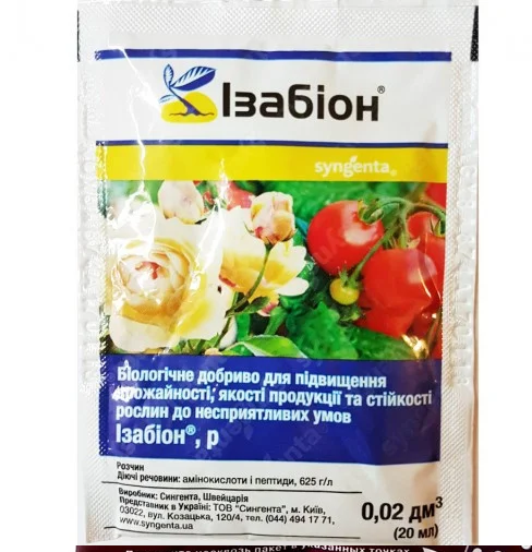 ИЗАБИОН проникает в растение посредством простой диффузии, растение при этом не затрачивает на этот процесс энергию. ИЗАБИОН является «строительным материалом», растение само направляет его в нужное место. ИЗАБИОН усиливает проникновение системных фунгицидов и инсектицидов внутрь растения, усиливая их действие. Является «переносчиком» элементов питания при совместном применении с удобрениями. Ускоряет преодоление голоданий.