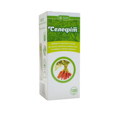 Селефит 100 мл – селективний до и послевсходовый гербицид широкого спектра действия, применяемый против однолетних двудольных и злаковых сорняков.