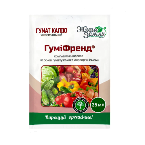 Комплексное удобрение ГумиФренд на основе на гумата калия с микроэлементами, является жидким концентратом для корневой и внекорневой подкормки овощей, плодово-ягодных, декоративных, хвойных, комнатных и садовых цветов.