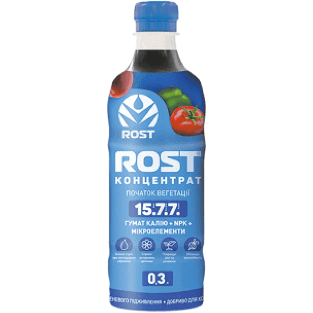 ROST-концентрат» - это органо-минеральное удобрение широкого спектра действия, в своей основе содержит гумат калия. Используется для корневой и листовой подкормки. Содержит сбалансированный комплекс минеральных веществ, микро- и макроэлементов, антибиотиков, природных стимуляторов роста, биологически активных веществ и витаминов.