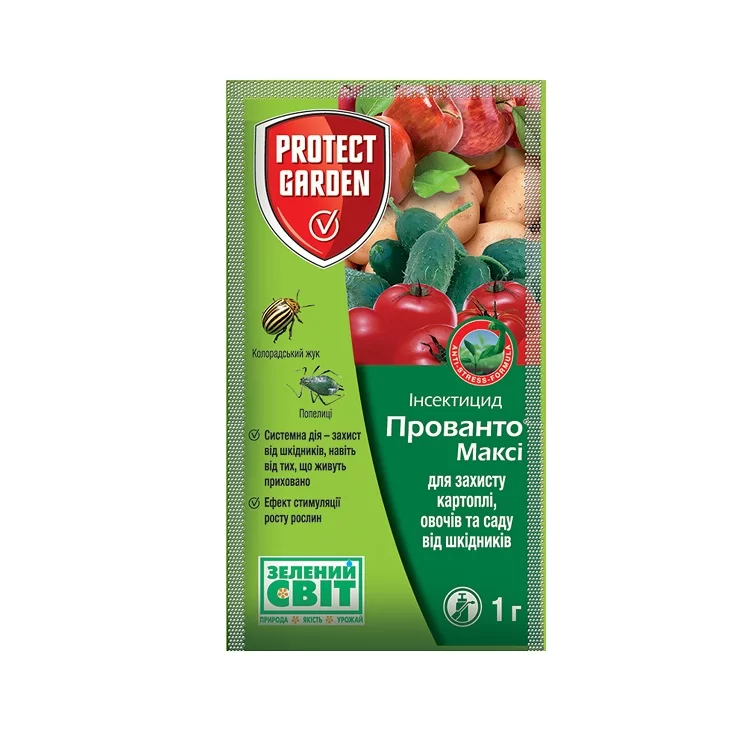 Современный препарат, который эффективно борется c колорадским жуком, белокрылкой, тлёй, трипсами, минирующими молями. Применяется для защиты картофеля, томатов и огурцов закрытого грунта, яблони. Действующие вещества инсектицида проникают через все части растений: корень, стебель и листья. Системный инсектицид имеет очень длительный период защиты и дополнительные свойства защиты от угрозы болезней, жары, засухи, холода, перепада температур и т.п. В процессе распада создаёт вещества, способствующие увеличению устойчивости растений и усилению роста.
