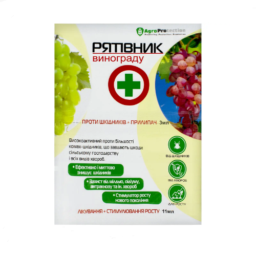 Многокомпонентный комплексный препарат для защиты винограда Спасатель в комплекте с прилипателем применяется против большинства вредителей и всех видов патогенных заболеваний данной культуры.