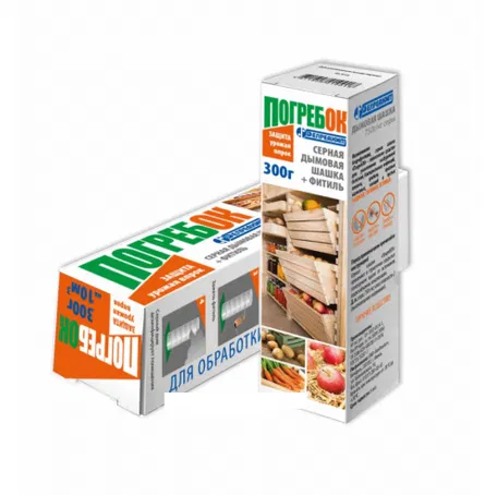 Серная дымовая шашка Погребок предназначена для защиты теплиц, парников, подвалов, погребов, овоще- и зернохранилищ, различных производственных и бытовых помещений от грызунов, насекомых, бактериальных и грибковых инфекций, избыточной влаги. В комплекте имеется фитиль, который обеспечивает задержку начала горения шашки на 2 минуты — за это время можно спокойно покинуть помещение.
