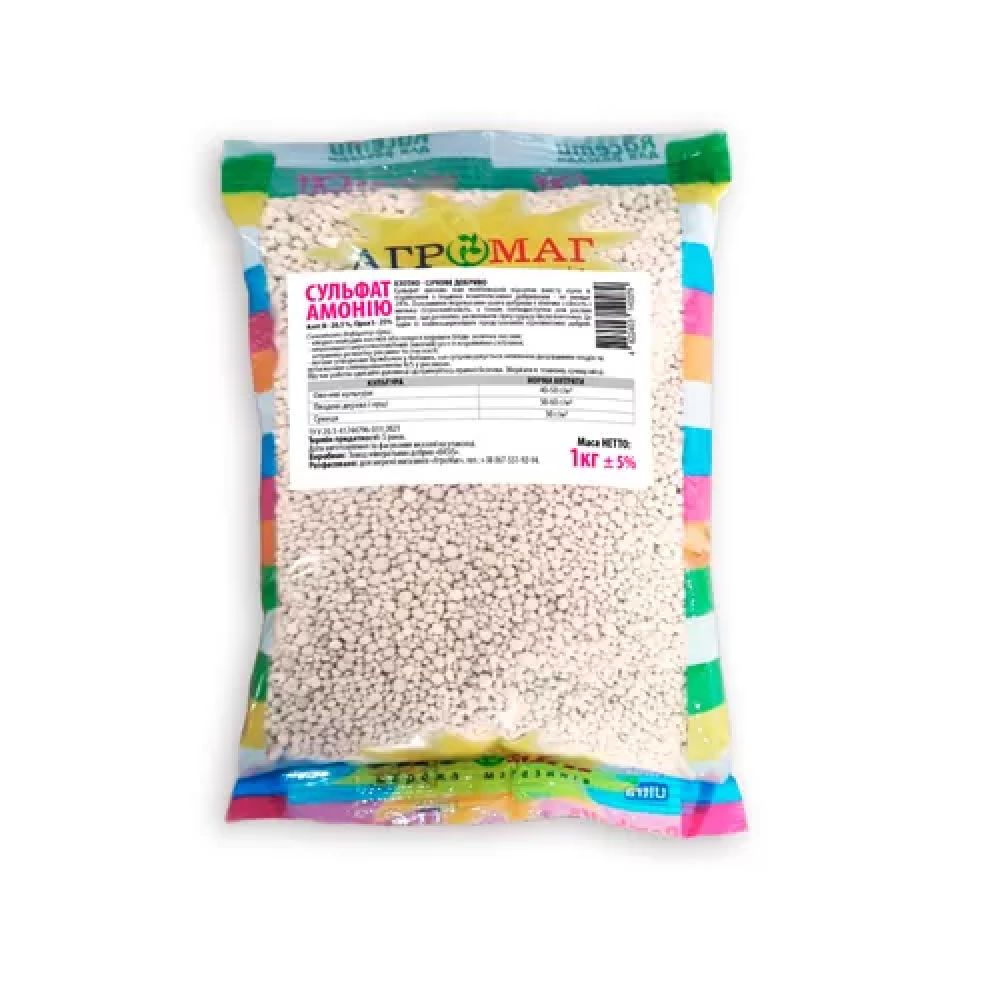 Сульфат аммония — это минеральное удобрение, обогащенное азотом (N-20.5%) и серой (S-25%). Это удобрение идеально подходит для подкормки овощных, плодовых и ягодных культур, способствуя улучшению их роста, увеличению содержания белка в плодах и ягодах, а также обеспечивая значительное повышение урожайности на 20-30%.