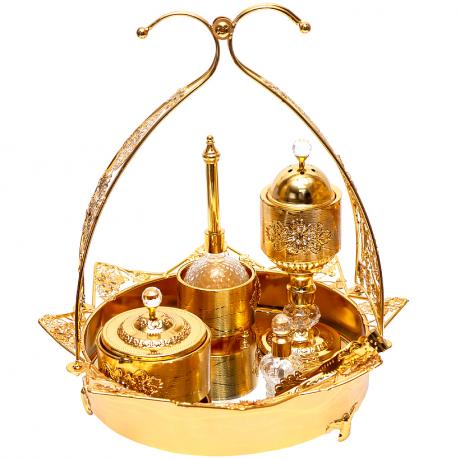 Набір для чаювання 5 предметів на підставці з дзеркальним дном. Колір золото, матеріал скло, метал