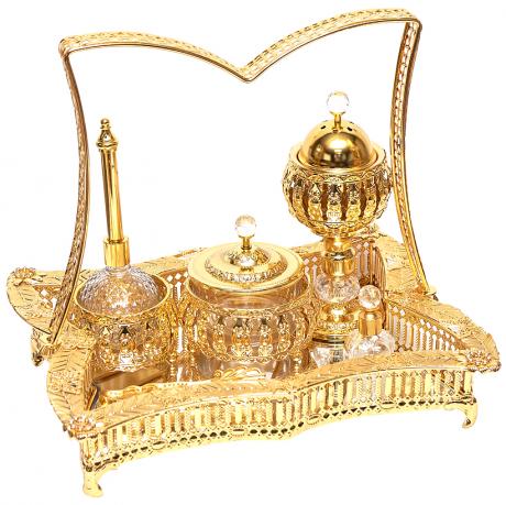 Набір для чаювання 5 предметів на підставці з дзеркальним дном. Колір золото, матеріал скло, метал
