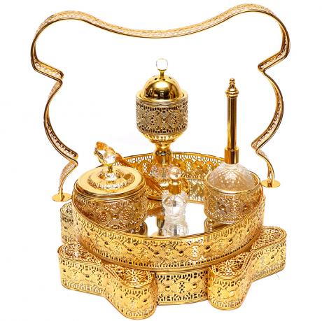 Набір для чаювання 5 предметів на підставці з дзеркальним дном. Колір золото, матеріал скло, метал