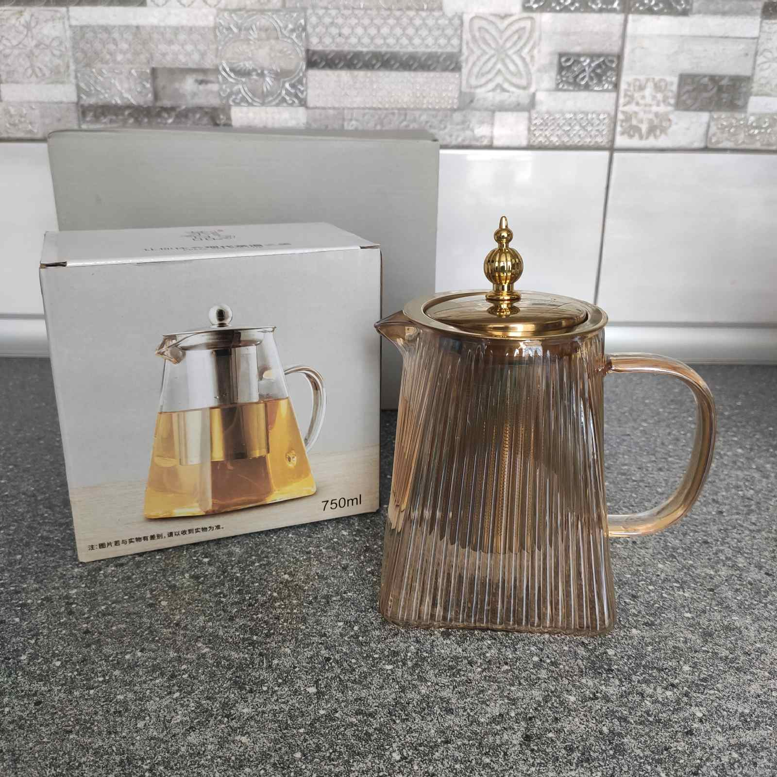 Стеклянный заварочный чайник с металлическим фильтром(750мл) из боросиликатного стекла