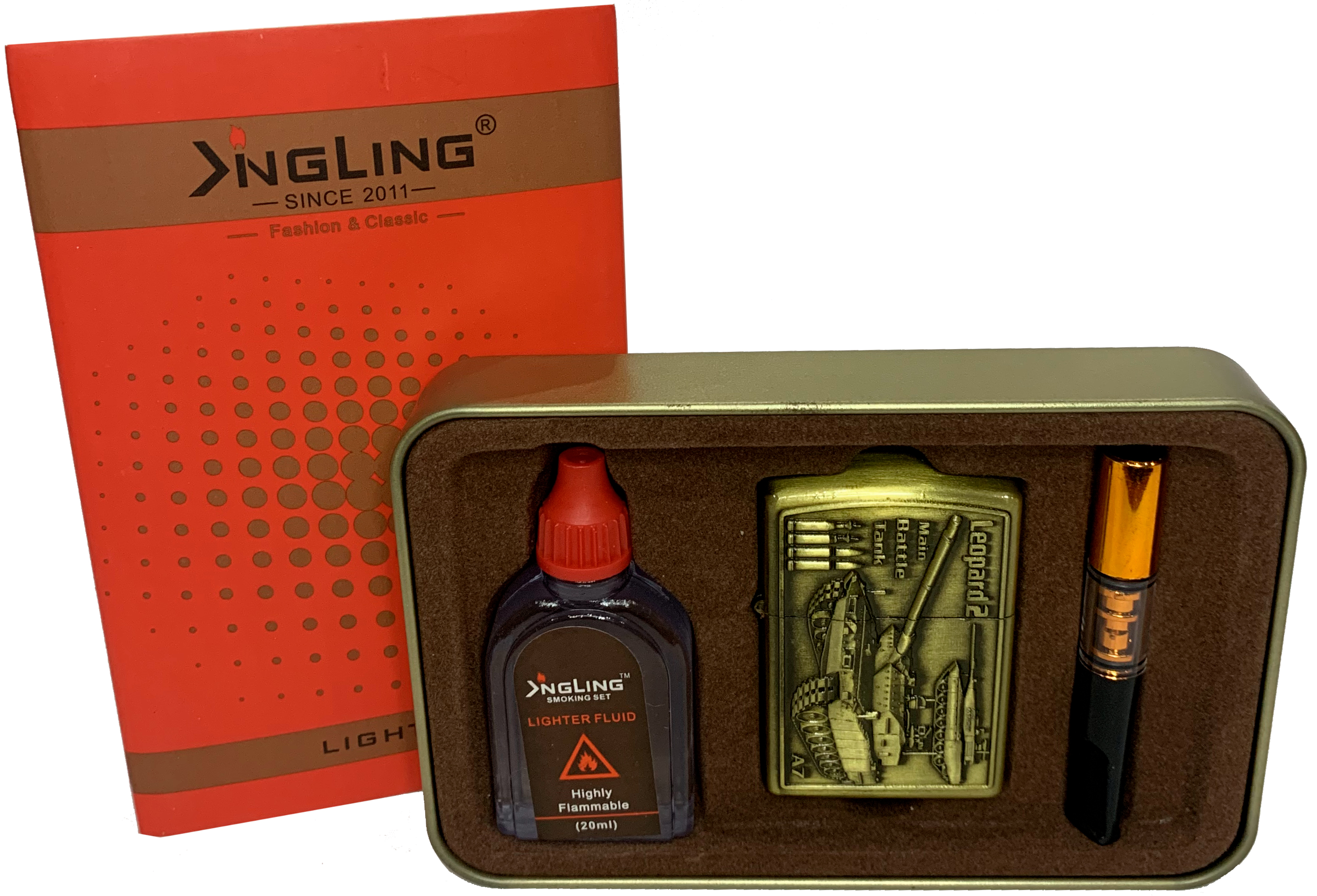 Подарочный набор Танк Leopard 2 3в1 (Зажигалка / бензин / Мундштук) HL-370-4