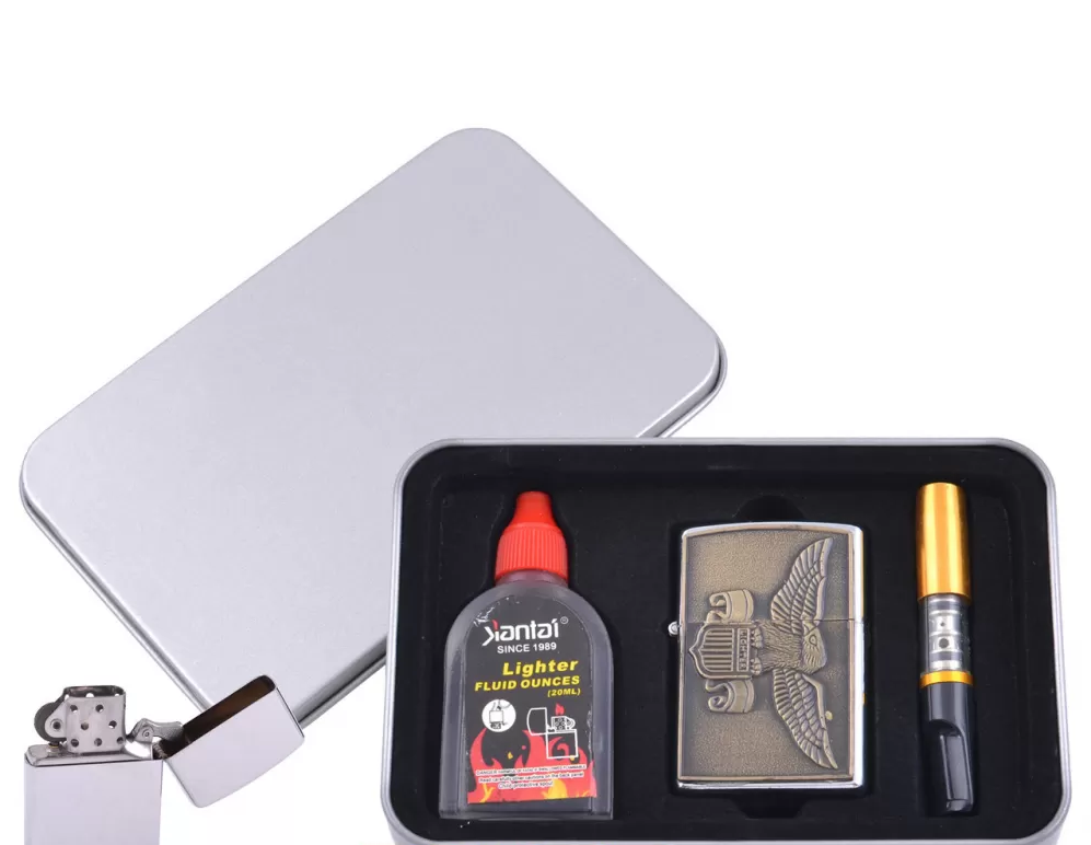 Зажигалка бензиновая в подарочной коробке (Баллончик бензина/Мундштук) Орел №XT-4707-6